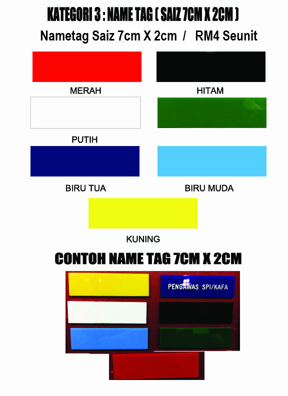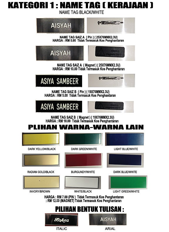 Sila rujuk kepada imej-imej di bawah mengenai harga nametag.